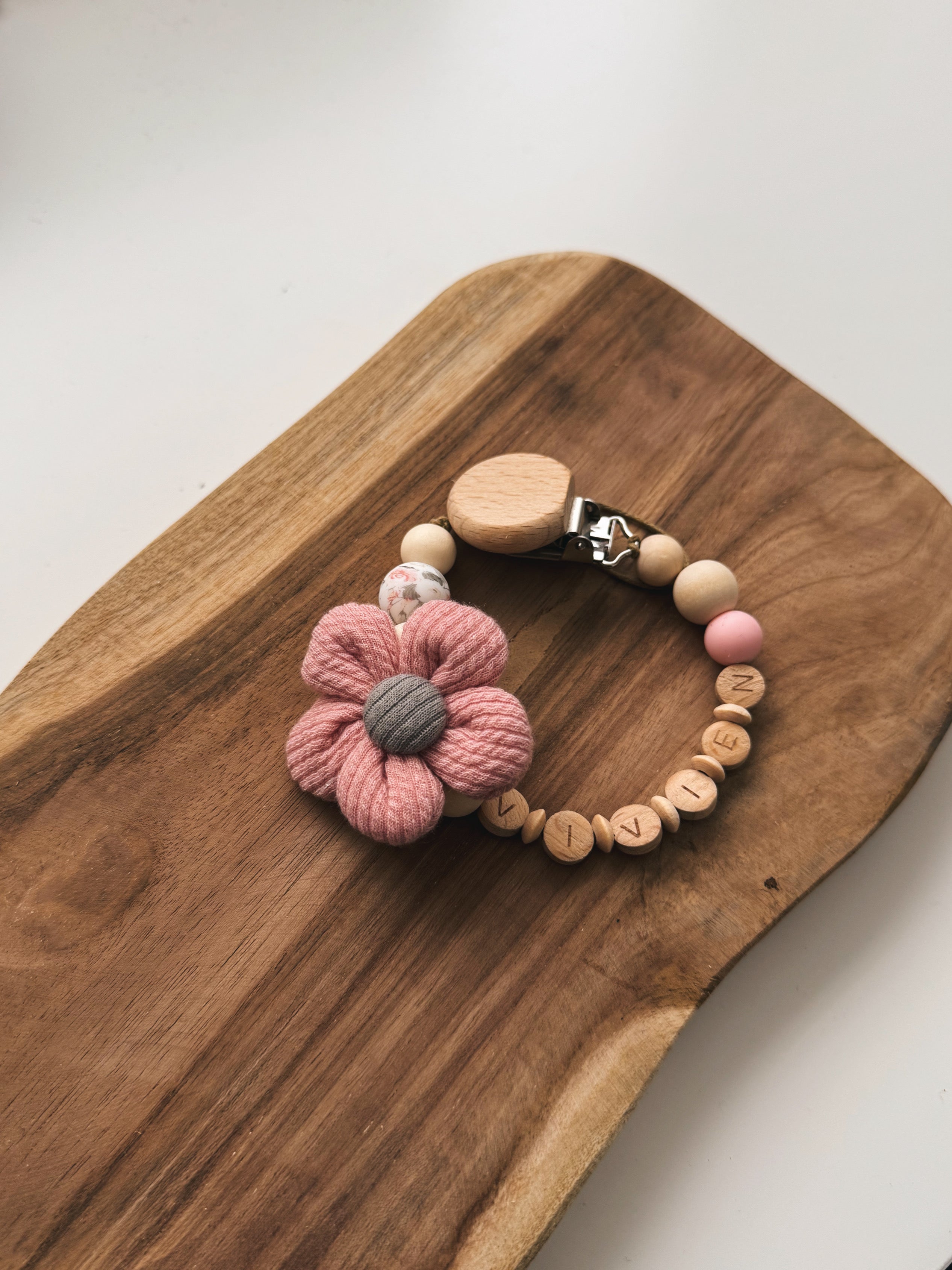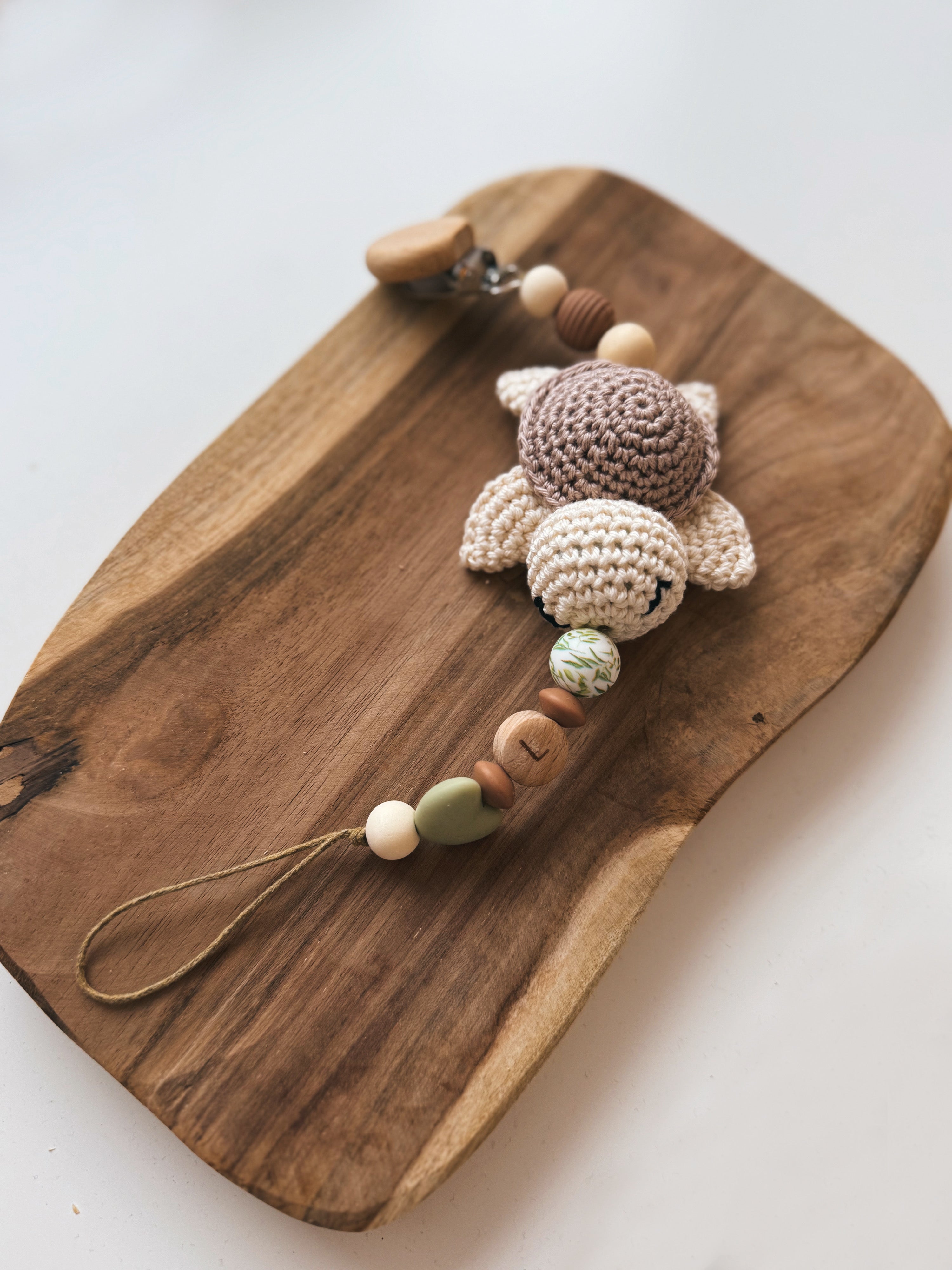 Schnullerkette mit Namen personalisierbar | Blätter & Blumen |braun