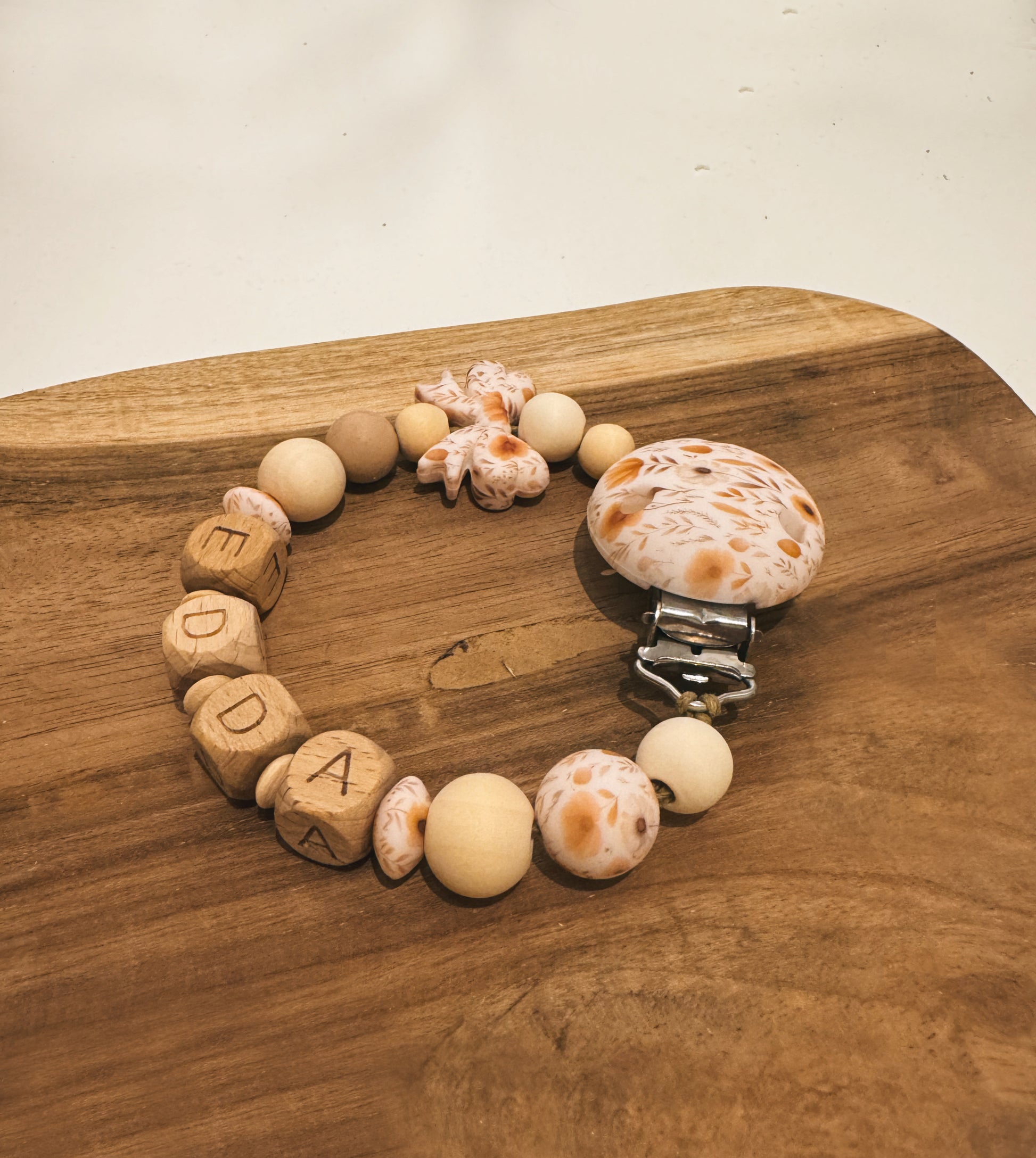 Personalisierte Schnullerkette – handgemacht mit Wunschnamen